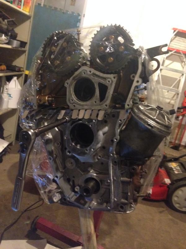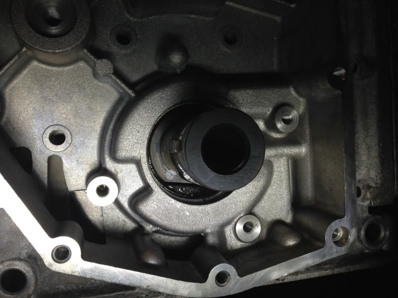 I thought initially I would try to line up the top of the case first then pull the bottom up with the block. That way I wouldnt have to mess with the profile gasket any and it would only be a matter of lining up the oil pump....
