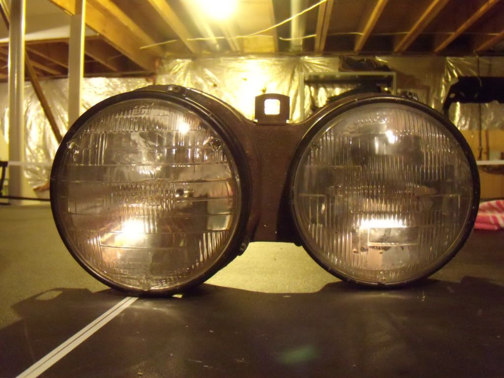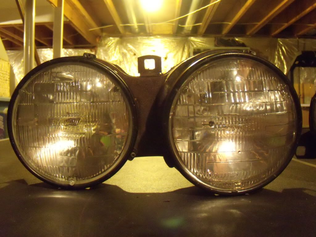Stock US sealed beam headlights - $30 + shippingPainted the trim rings black, but the paint has a couple chips. All lights still work well. The mounting brackets have a little surface rust, everything lines up properly. I probably have the sealed beam pigtails if you want them.