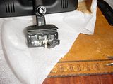 This is a back side and bottom shot of the unit. Notice the plastic knob   near the base? Make sure you the unit you buy has this because this part,   when turned, helps prevent the mirror from shaking. Sometimes these get lost   and then the unsuspecting eBay buyer gets a mirror without one because he   didn't know to look for it. Ask the seller if it has one before you buy if   the pictures don't show it.