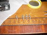 Grab the wires with the female pins that you soldered   together and route them through the large hole and the smaller hole to the   right.