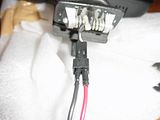 Solder wire to the lamp like this picture shown or crimp   to the corresponding wire. I prefer soldering because I don't trust crimp   connectors. The red wire is to the right and the black wire is to the left.   The camera didn't pick up the colors too well in this shot.