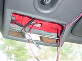 Route the red (12V) and black (GND) wires through the ceiling over to the   mirror area. I had to pull down my door trim but the routing process was   easy.