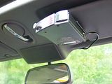 I ran the RJ-11 connect out from the roof lining right   near the sun visor and still use the visor clip so the V1 can come down   easily. When the V1 is taken down, the wire can be nearly tucked behind the   visor.