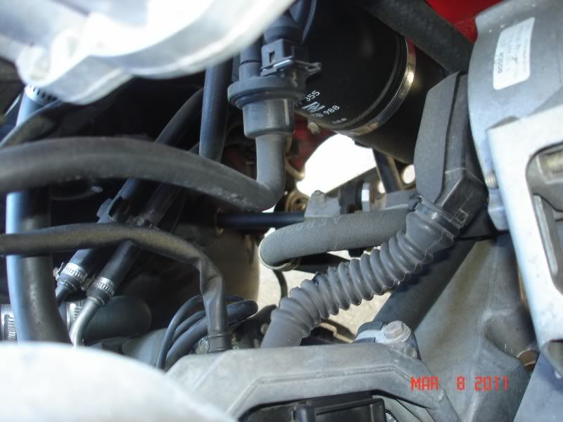 Here's a pix of the canister. It has a short piece of hose (with a one way valve I'm guessing) and then runs to the TB.