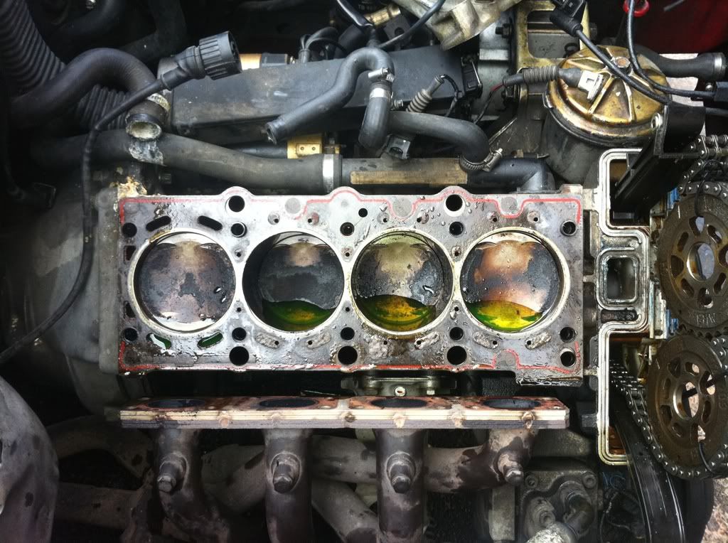 i may have been hasty with pulling the head off just because of coolant in the spark plug socket even after doin new valve cover gaskets. no compression tests or leakdown tests were done so i wouldn't be surprised if people start shaking their heads or fists at me. lol