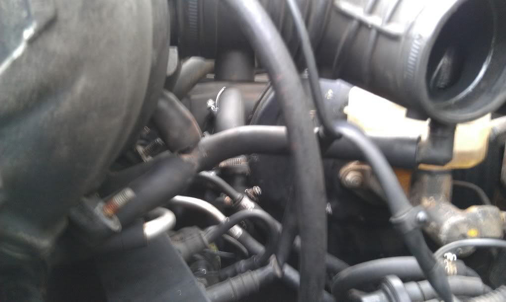 So I've got most everything hooked up but when I go to put on the air intake I have a hole on the bottom of it and nothing to put in there.  There are two holes and the one closest to the intake is the one causing my issue.