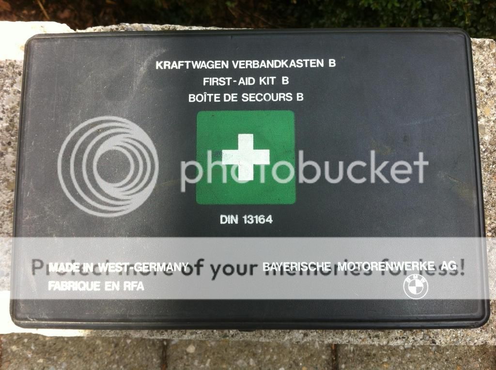 FYI: Here in Germany most of this stuff is dirt cheap.  You can buy a brand new OEM E30 safety kit for about 10-15 euro.  I picked up an additional warning triangle for 2 euro and the actual storage container...these pop up on eBay.de occasionally.  One sold the other day for 12 euro.  The only problem you will encounter are direct translations of key words when searching.  Some sellers list part numbers; most don't.  I came across most of my stuff by seeing something interesting that I wasn't going to buy and clicking on the sellers "additional items" to find things I originally wasn't searching for.  Those silly Germans and their long, complicated words...