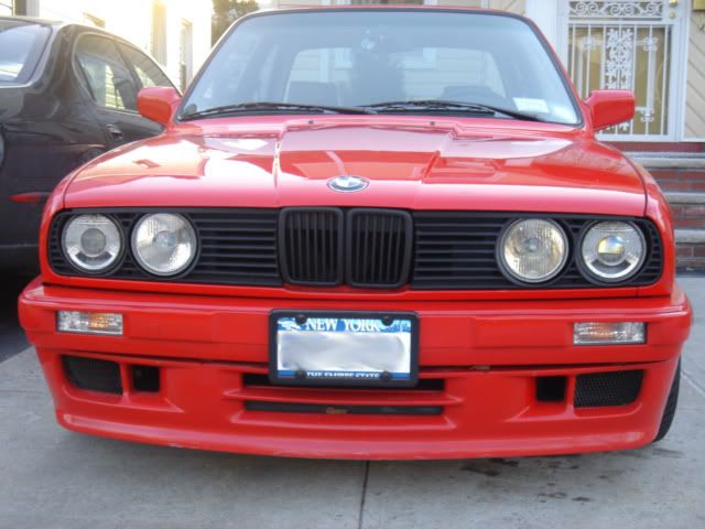 Thanks, the bumper is the us bumper with an mtech II front valance. I was thinking about painting the rings black also but I was just excited to get the lights on. Your car looks like its coming along pretty well also. Did you finally get the probs you were having all sorted? Also, do you have any pics of the front with the black rings?