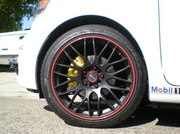 First off thank you. Second, I know these wheels are FWD with a 42 off set. I know these wheels aren't great. but all Im asking is for is a little help from a fellow M42'er. I just want to see a black wheel with a red lip on a brillantrot.