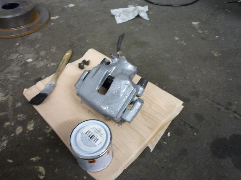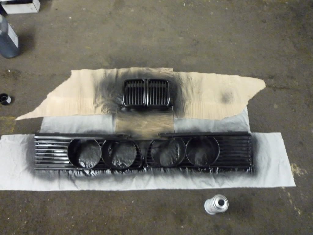 I tried today to paint the grill black instead of chrome like I have seen on many e30's here on the forum but i don't know if i think it's better och worse yet. I also have been doing some brakejobs with painting and refurbishing the brake calipers.