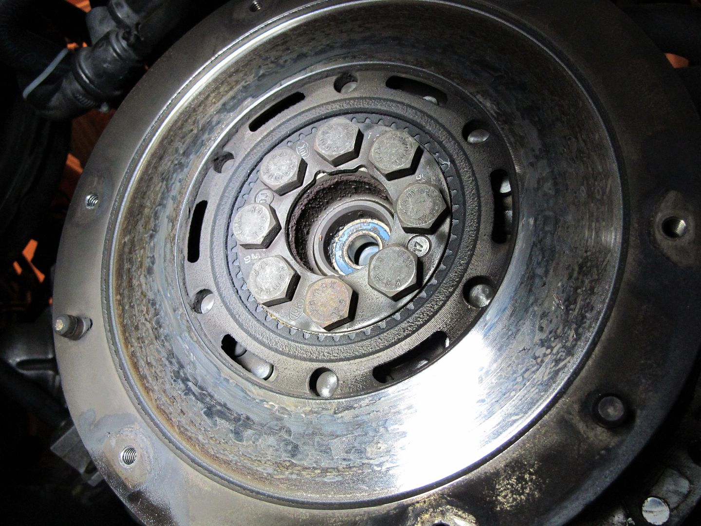 Here's the back of my engine with the flywheel in place. I don't see any oil around here, is it safe to move on without replacing the rear main seal?