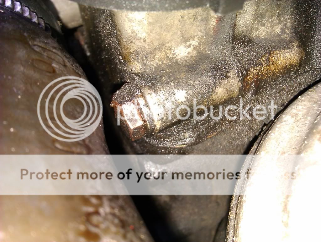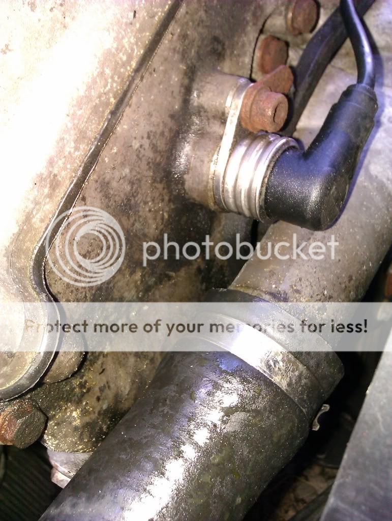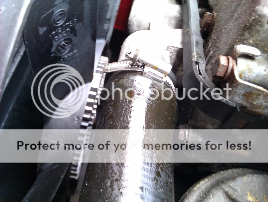 this is a pic of the bottom of the rad hose side of the housing, the oil seems to be on the hose and running down the side of the engine.