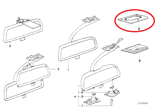 Interior Rear-View Mirror Base Plate $5: 1,2,3
