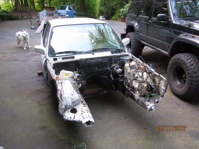 Finally got the front end stripped to make it easier for the shop to put it up on their racks and hopefully straighten it out.