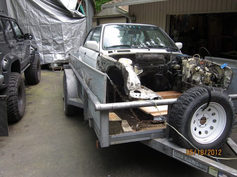 Below are some links to photos (still no luck posting photos - is this normal, or am I on a special list?) of the car stripped and loaded into the trailer before she went to the shop for rejuvenation.