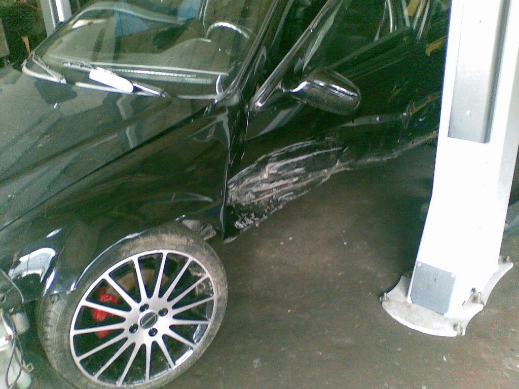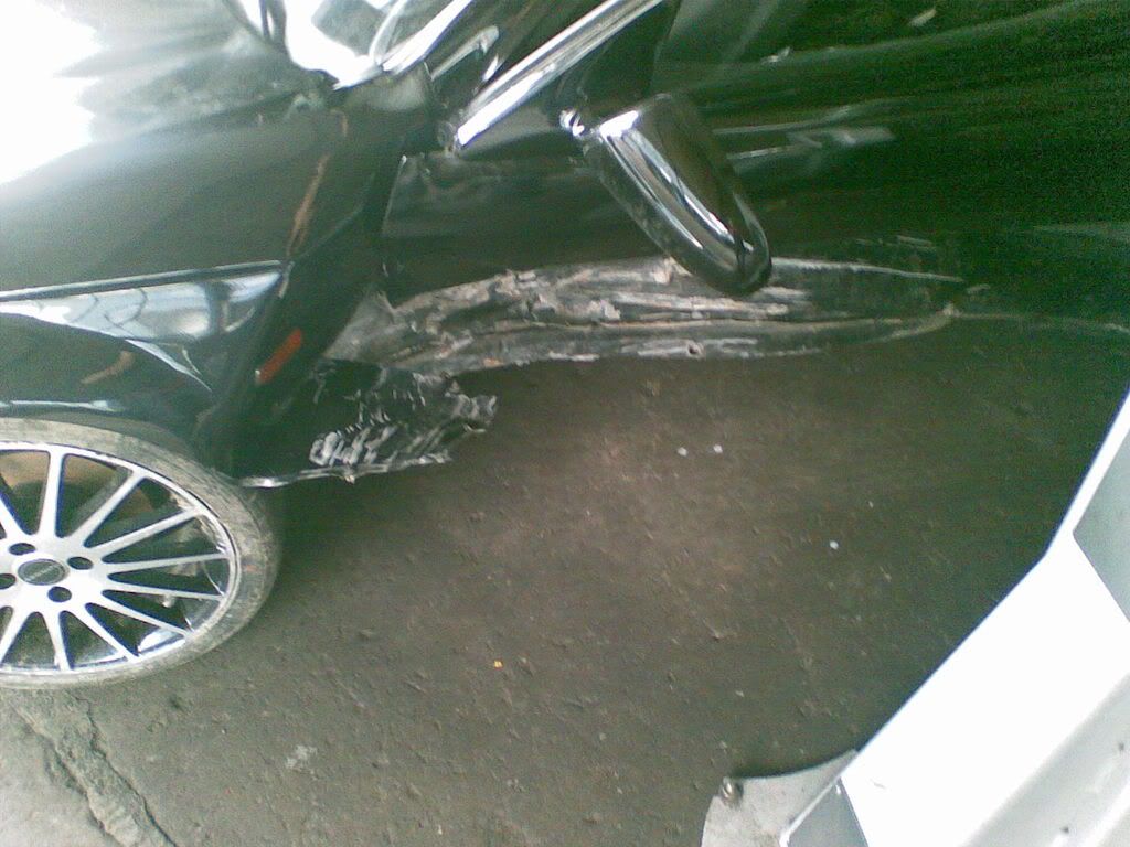my friend was driving around like an asshole... almost the double of the allowed speed. 140km/h instead of 80km/h... he lost control made some 360spins on the grass and finally hit a stone as big as a motorcycle in the right corner of a house.. you can see it on the picture..so the driverside is destroyed how you can see!! then he called his dad, who by the way is the owner of the carshop where i can work. he picked him up with the tow-car and drove him directly to the policestation!!result. 3months no driving license and a monetary penalty of several thousands of swiss francs!! his dad HATES people who drives like that...even if it is his son!!imagine it wouldnt be a stone but a tree?!?!