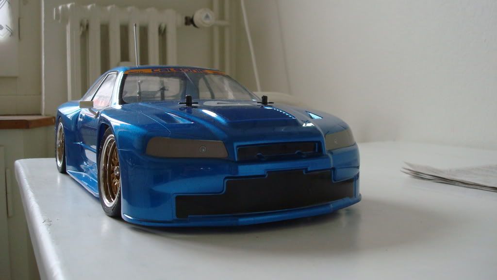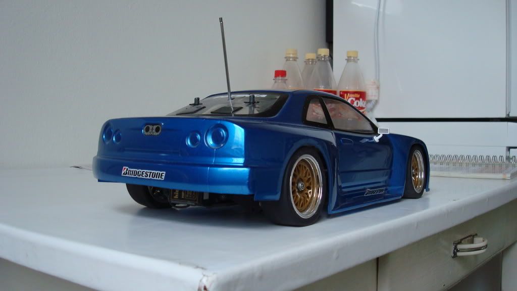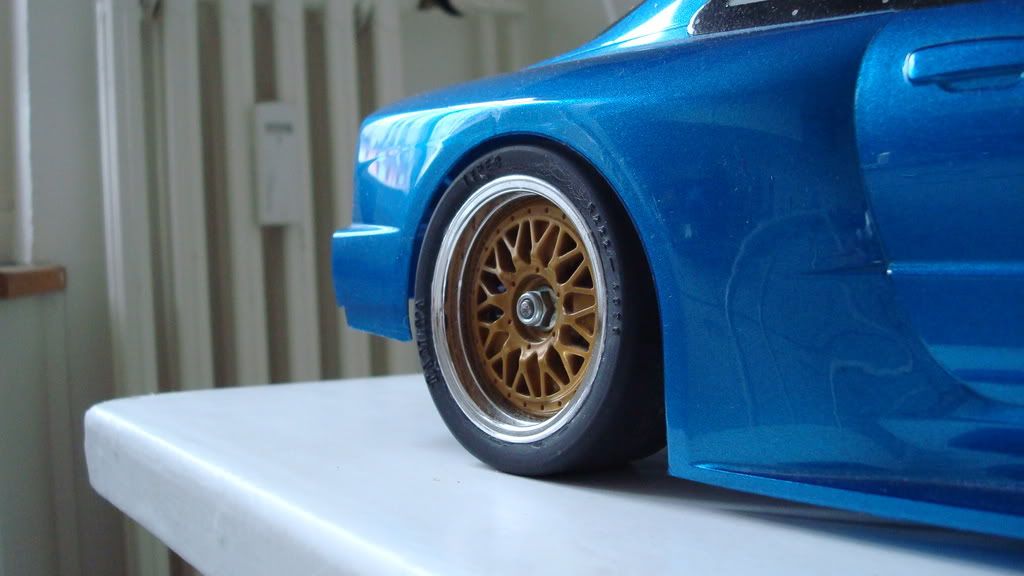 blue body with gold rims, definitely reminiscent of a subaru wrx sti...u know, the good ones, before they went....hatchback *throws up*  i'll always love a black body with beautiful gold rims....wow do i own a 1977 pontiac trans am or a BMW? (factory color combo on the t/a)