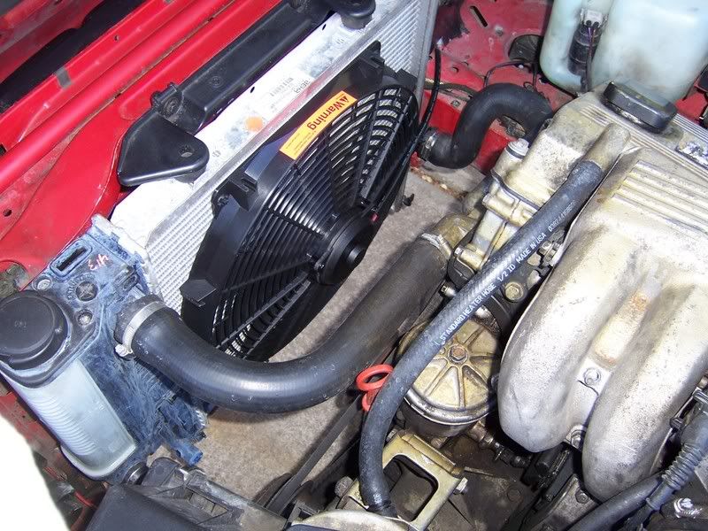 But i allready ordered the electric fan so i just installed it for more cooling then the clutch fan. it is a 16" flex-a-lite fan with 2500 cfm. I hooked it up to the aux wires with a over ride so i can turn it on if i want to.