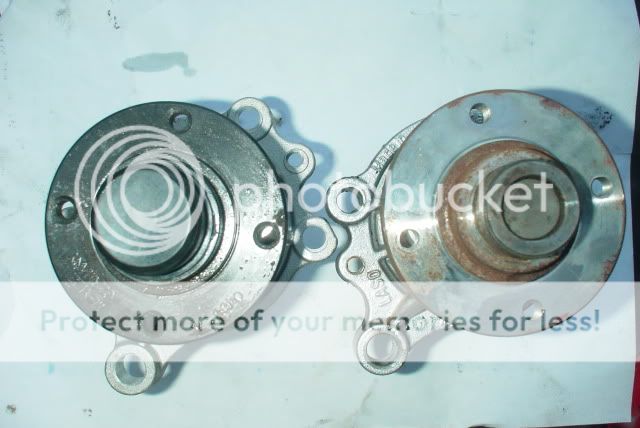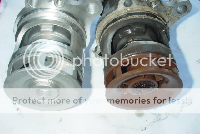The original water pump next to the Meyle replacement.  Note the original Laso pump has the plastic impeller.