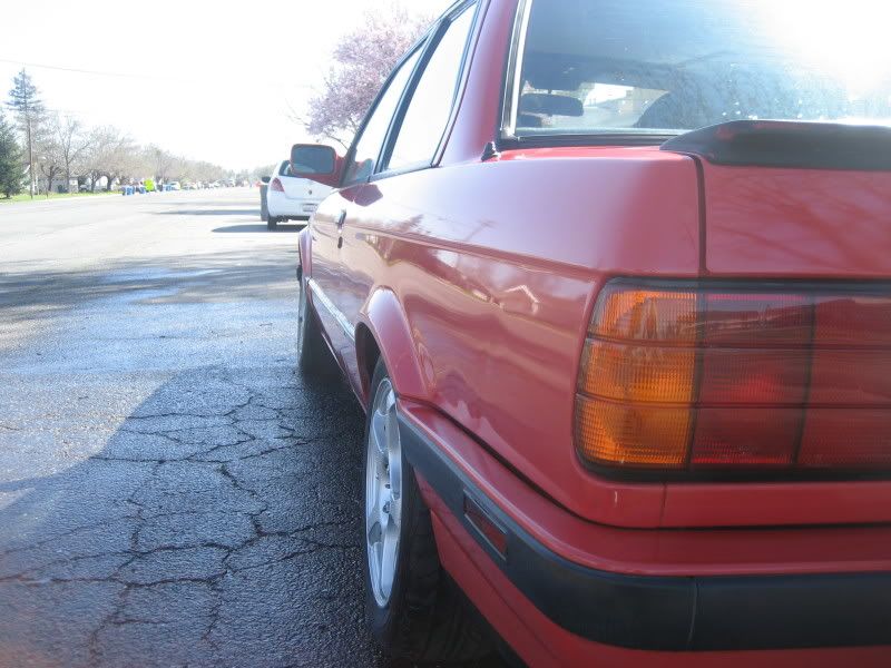 The rear does look lower in the photos, but I've never noticed that in person. Maybe because my driveway slopes toward the street, it caused that illusion in the photos.