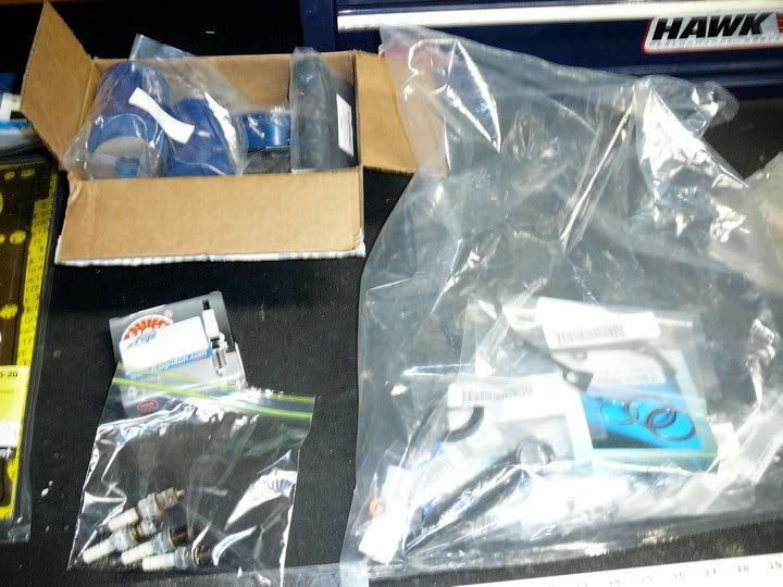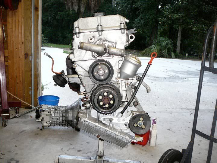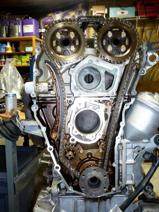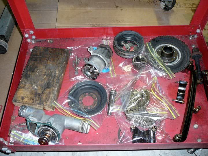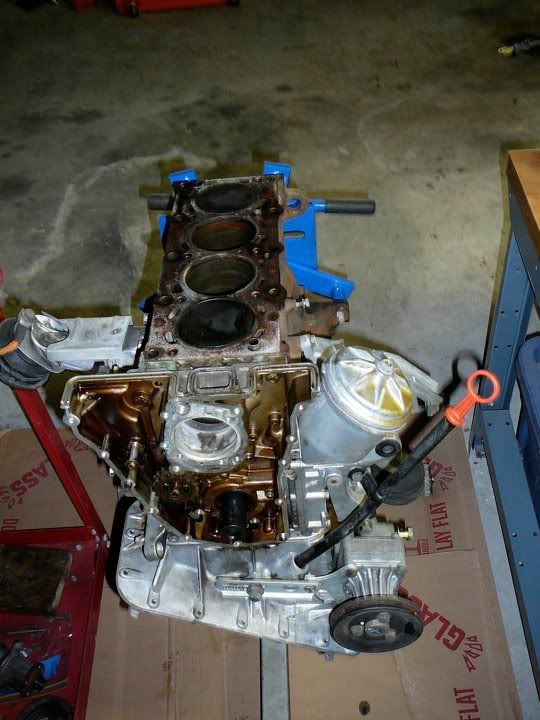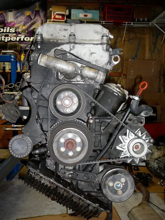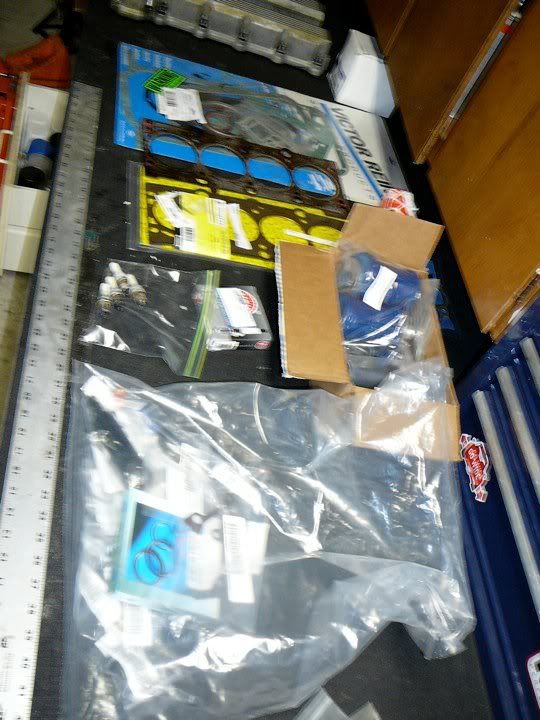 the motor is waiting for all the gaskets to arrive, EVERY gasket in the motor with the exception of the head gasket is being replaced, we ordered a new head gasket, but it seems like everything with the head gasket is fine, and don't really want to take the head off when everything seems ok, and it doesn't seem like doing a head gasket on this car would be that hard with the motor in the car incase it does need to be done at a later date, the thermostat and water pump will also be replaced while were at it.