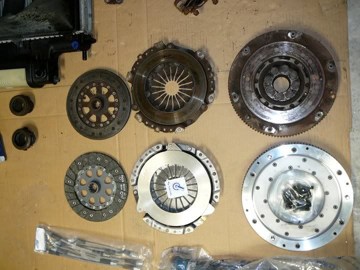 the clutch, will be a stock sachs and the flywheel I'm planning on is the JB racing flywheel from bimmerworld... 9lbs... stainless steel clutch line from UUC..