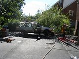 Here's the donor...poor car.  PO's "friends" punked him with a rollover party.  At least that's what I think.  I felt bad, but that's life...it'll be ready in a week or two.
