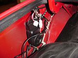 While digging behind the back seat, I found this device. I   posted a picture on Roadfly.Org (bimmer.org) asking what it is. The friendly   forum members told me that it had to be a bomb or a weapon of mass   destruction. After taking it out, it is my best guess that it was an old   Lo-Jack system. The orange part on the bottom is a battery and the metal box   near the top had coax coming out to it going to an antenna. Perhaps it was   one of the first Lo-Jack systems because it is so big and so poorly hidden.