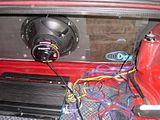 One final modification to the stereo system is to find a black vinyl  rear seat with an arm rest. With the arm rest folded down, the bass will  escape from the trunk a bit better.