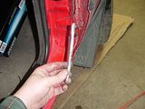 Door Hinge Replacement When I purchased the car, the passenger side door would not close properly. It appeared like the bolt going through the hinge required replacement. I didn't think that it would be a big project to replace the door hinge bolt. I brought the car to the dealer to have some small, but critical items to be fixed before I could have the car inspected. I asked them to replace the bolt. They called me back the next day and told me that to fix the hinge they would have to bring it to their body shop. To fix the hinge, they told me that they would need to replace the entire hinge. Hinge replacement requires the old hinge to the unwelded from the body, the hinge to be painted, and the door to be aligned properly. The bill would be about $500. Fortunately the problem can be properly fixed for about $30.