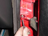 Pull the rubber gasket away from the guide hinge. Remove the C-clip from the bottom and use a punch to push this pin out.