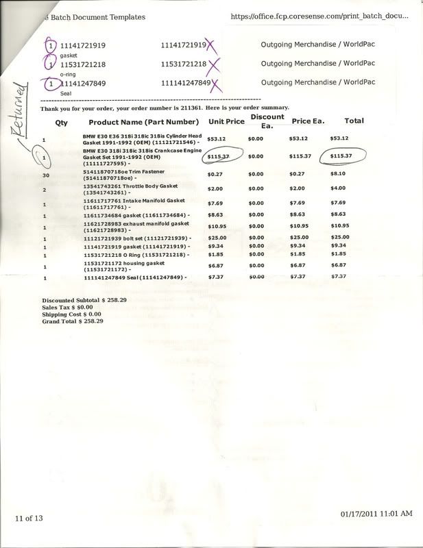 rjcaptsean, i dont know if you have bought new gaskets yet or not. but FCP has pretty good prices, and they will price match getbmwparts.com, 149$ and up gets you free shipping..