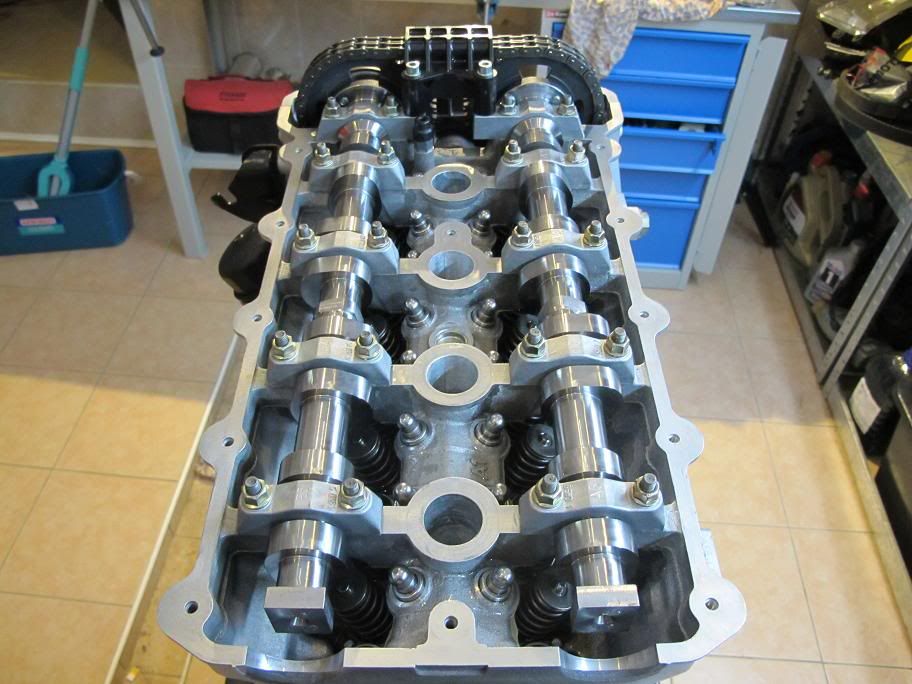 Camshafts, chain, sprockets are installed