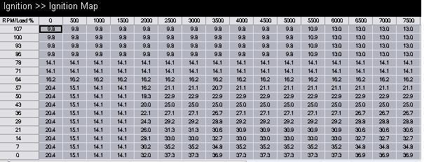 The values in the ign maps (tps vs. rpm) are coupled together with the values in the amp (map sensor) table (wich in this case is in 0.15bar - 1.1bar absolute)