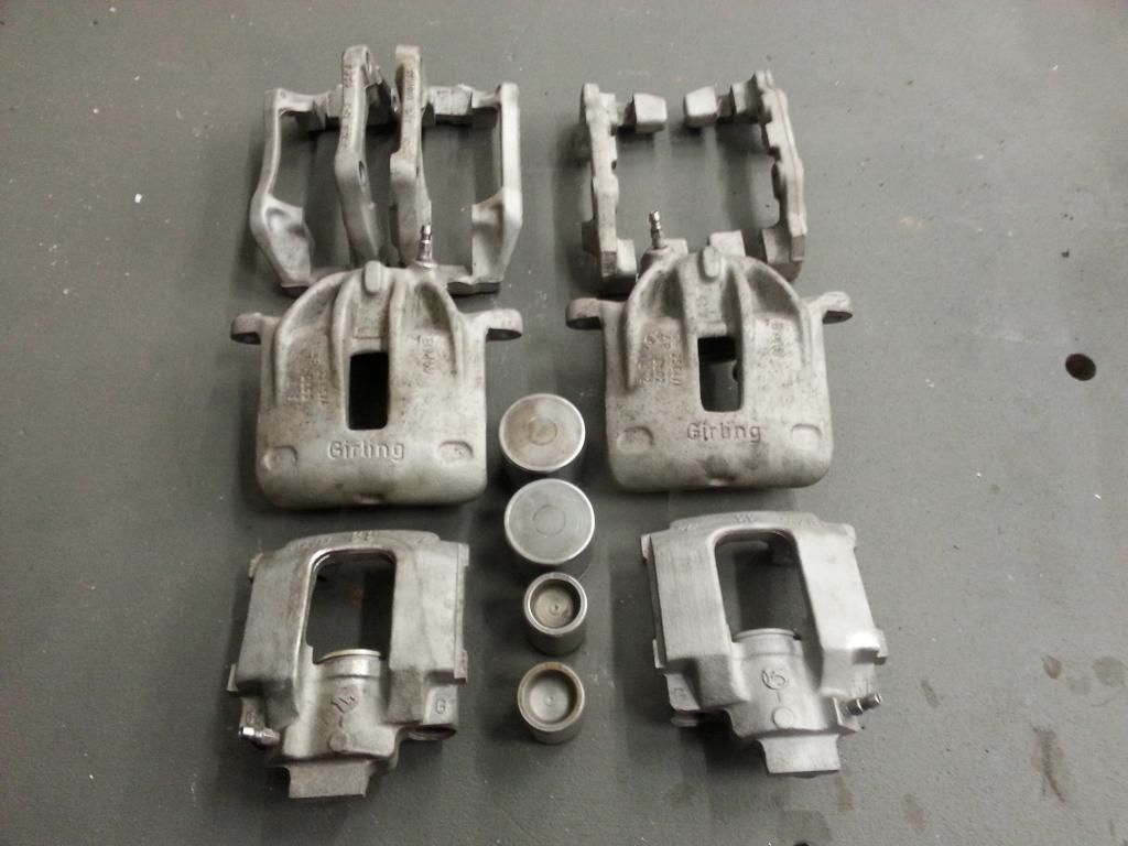 Just finished a complete rebuild on 4 brakes. OEM rebuild kits and Hawk HPS pads.