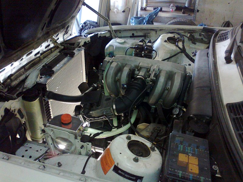 This is how it currently sits in the garage. I installed a big M50 radiator and a oil vapour separator.