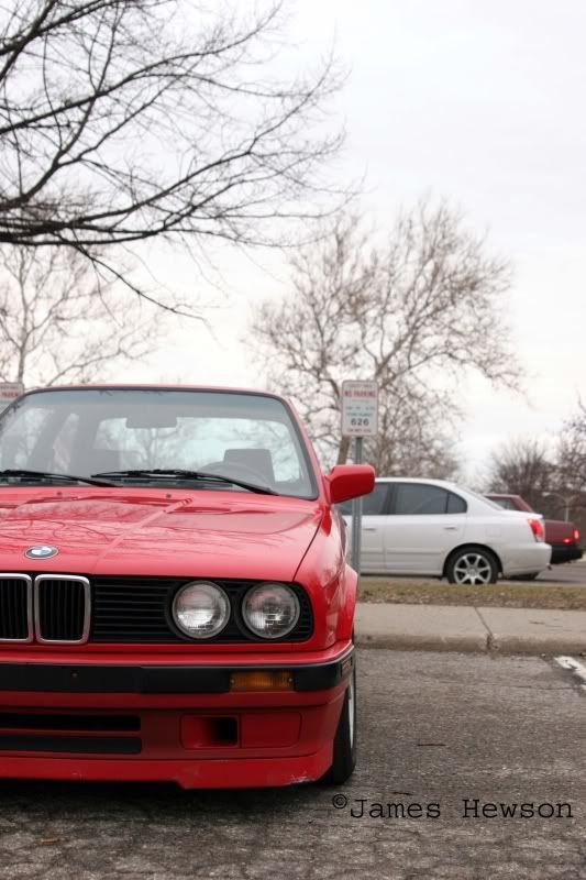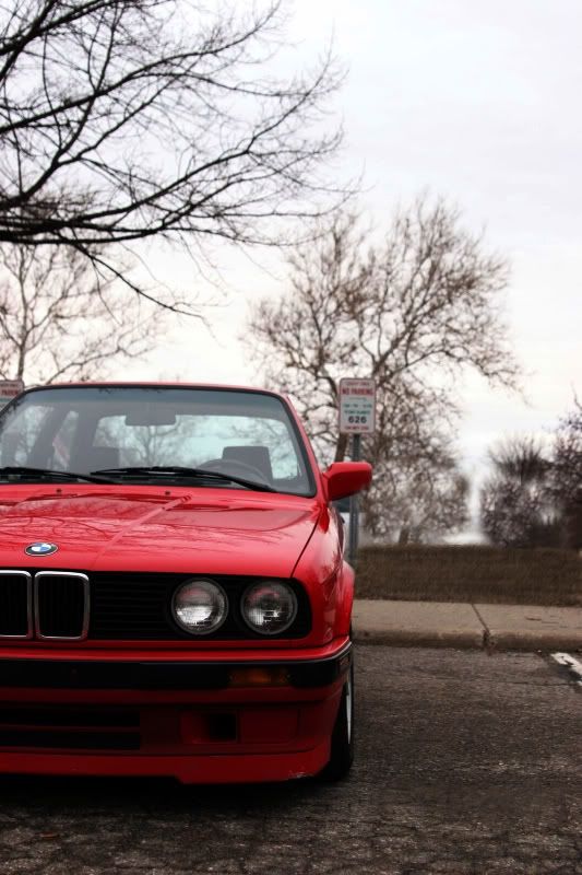 Here are a couple of pics from about a week ago that a friend of mine took of the 318is.  Yes I know my lip is beat to shit, thats the problem with loosing it at the track in a spin, in the winter, and rubbing it on most curbs into and out of stores around here.  Other then that I really like them, this one might turn black to cover up its abuse and I think it will look pretty good.  Oh and the weaves are my winter wheels, but I still love how they look.