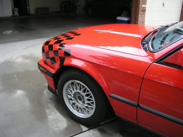 Cool. I'm sure it will look even better once your setup settles. Expect another 1/4" drop or so. Personally, I want my car at least a 1/2" lower than yours. I'm looking at IE stage 3's or at the very least Eibach sportlines. Regarding the flag, I just think it's too big. Making it smaller IMO, would make it more aesthetically pleasing.;)