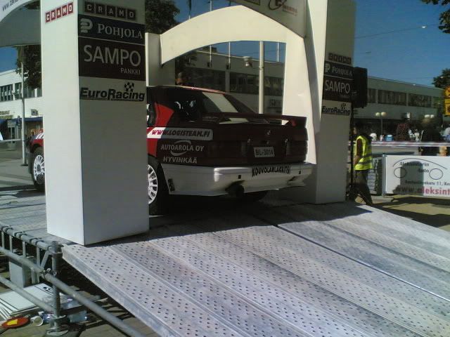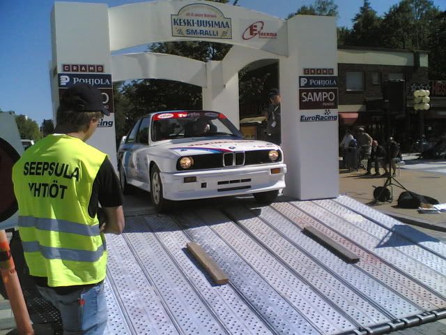 Yesterday my home town was a host to a rally event which is one of the rallies of Finnish championship series. There where about 150 car which particpated to this rally. Lots of different classes from high tech WRC cars to low budjet cars. There were also several finnish WRC drivers like Toni Gardemeister and Kosti Katajamäki. Altough Gardemeister was just having fun and drove VIP car. His personal hobby rally car is a 36 bodied M3...