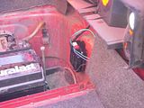 Double sided tape secures the unit to the trunk wall near   the battery. When the plastic trim is replaced, the unit is totally hidden.   Beware that if your trunk leaks, this is a bad spot. I may end up moving up   upwards behind some trunk lining, but as far as I can tell, my trunk is water   tight.