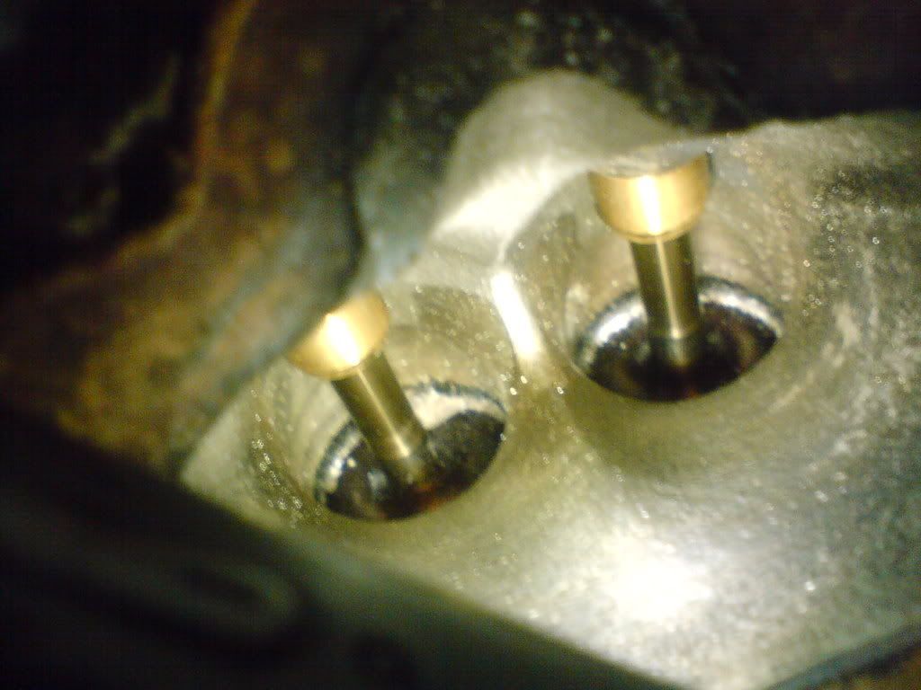 The inlet valves. Pretty clean also, don't know how they look on a higher mileage engine. The dirt inside came there due to my stupidity.