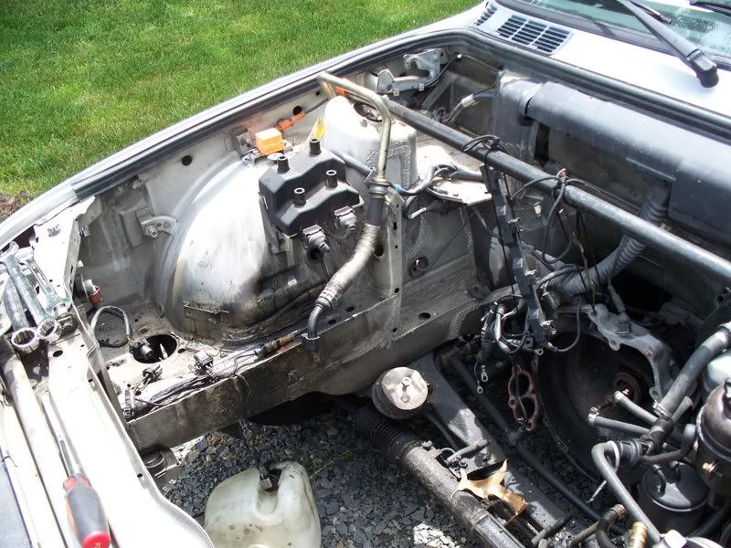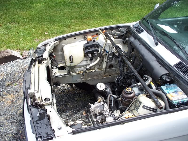 pulled out the condensor, AC lines, and whatever the AC collector or whatever it is on the passenger side along the fender.  alot more room for a FMIC now :D