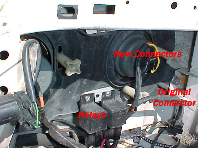 I ran separate looms and relays, using the original wiring to turn on the relay, and 12ga wire to support the higher wattage bulbs for my H1/H4 lights.