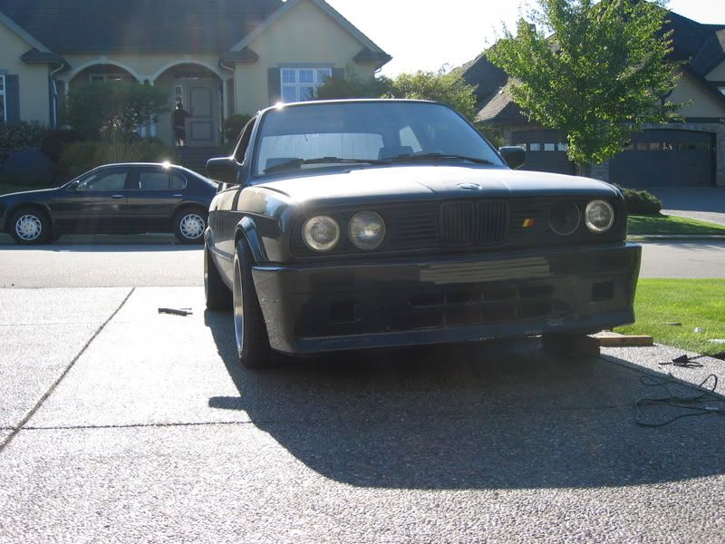 This is the front end shot, but it looks terrible right now because it got vandalized, and the euro plate is trashed. all that double sided tape needs to come off, and it needs to get resanded and painted... i plan to do it all when i get around to finishing the sanding on the rest of my RD kit.
