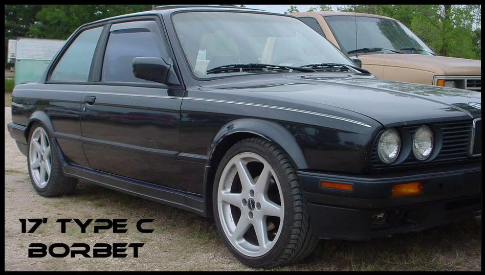 Borbet 15x7.5  hubcentric,  Offset 25 ( I think ).  These are the the sharpest looking rims but they are cheap and easy to clean.  I put the roundel on the caps.