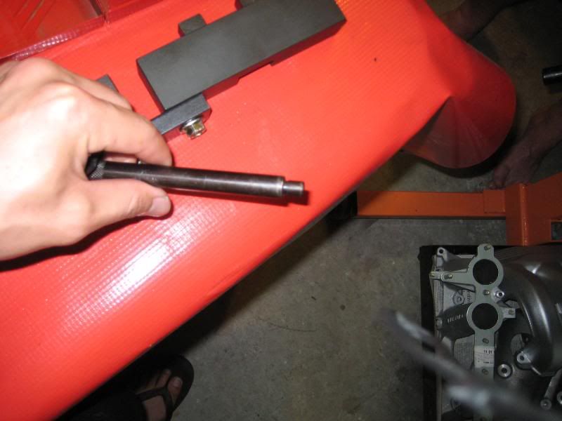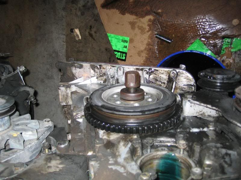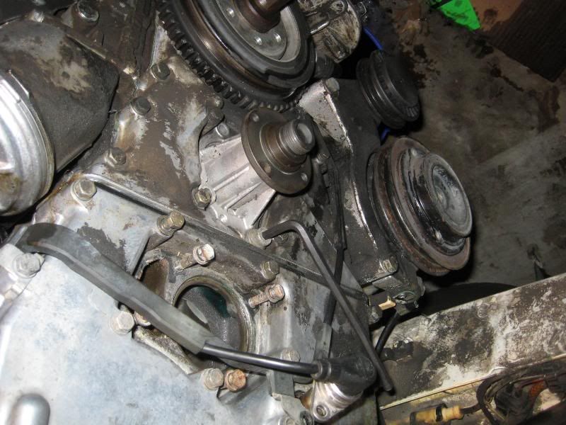 Then for the main pulley.  The bolts for the pulley were tight causing the cranshaft bolt to rotate too so I set this up to stop the rotation.
