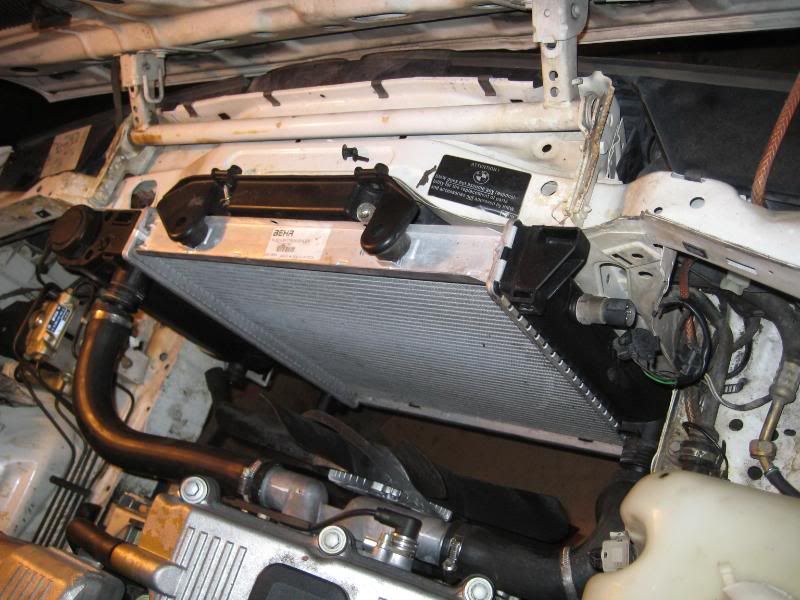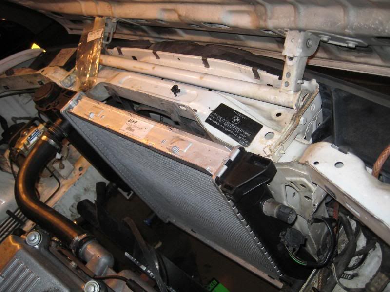 undo radiator hoses, bracket ontop of radiator