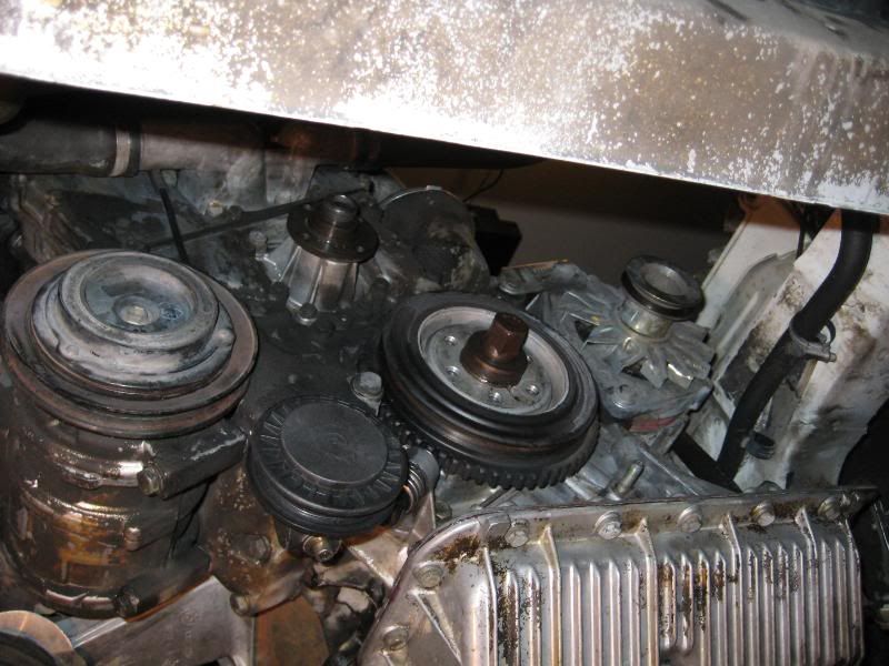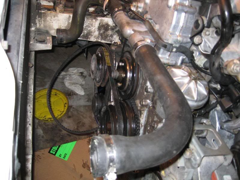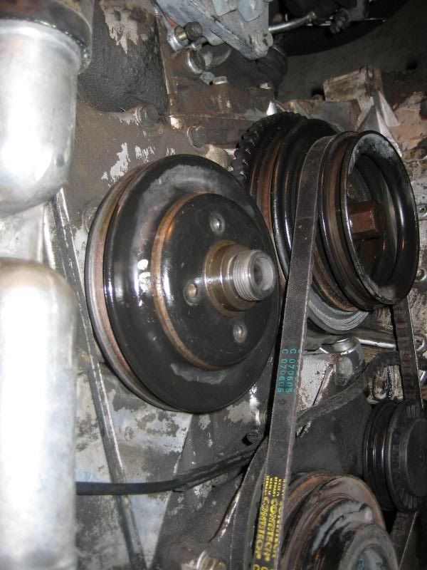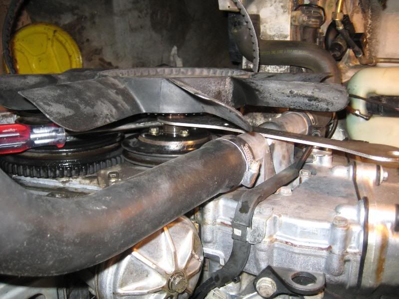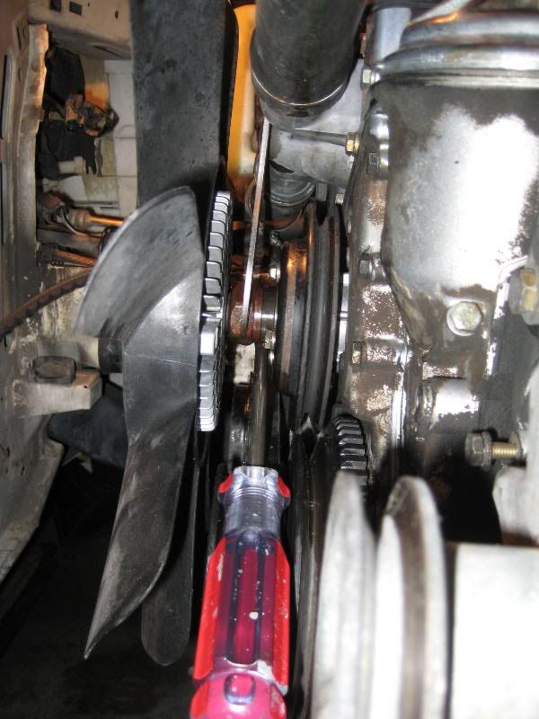 Undo the bolts to the pulley similar to the way your removing the fan clutch
