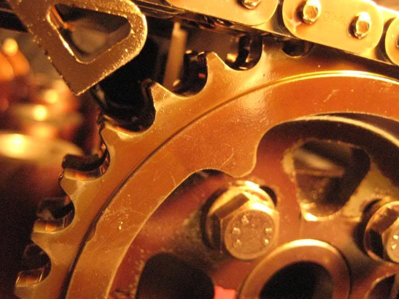 Also once your ready to replace your sprockets, use a scribe to mark the exact location of the bolts on the sprocket.  This needs to be EXACT.  Transfer these marks to the new sprocket or else your timing will be off!