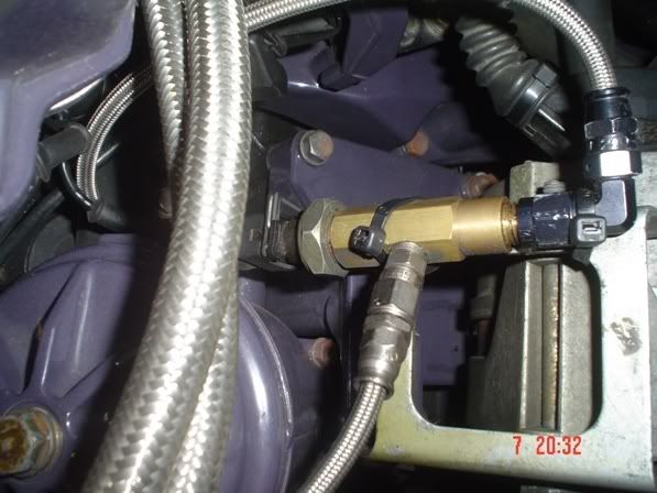 The oil return line i have tapped into the block, did this becasue i was not sure how high the oil level sits in the sump (you MUST tap into a point higher than the oil level) so it is garanteed to be high enough here. I have since removed the copper tube and now run a high temp oil resistant hose from the turbo down. With the copper tube i couldn't get a good seal and it always leaked.